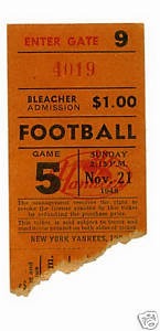 1949 NY YANKEES FOOTBALL TICKET STUB